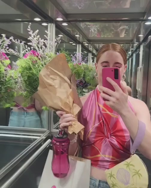 This scarf does it all- a top, a headwrap, a neckerchief, a bag accessory, you name it. Available in two sizes, it’s your new go-to for instant “wow”.